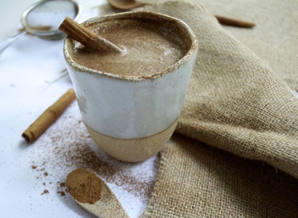 - Pour into a mug (I poured it through a mesh strainer so there was no chunky bits), top with cinnamon and a cinnamon stick if you like and enjoy!
